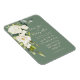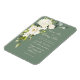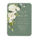 Este é um belo e simples ímã de convite floral sobre um fundo verde-oliva com elegantes flores brancas de aquarela cercadas por galhos de verduras. Absolutamente lindo.