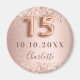 Ímã de Salva Data elegante, clássico, glamuroso e feminino para uma Quinceañera, festa de 15 anos. Fundo gradiente rosa dourado e rosa. Decorado com brilho, faíscas em rosa dourado. Personalize e adicione um nome. O nome é escrito com uma fonte de letra manuscrita moderna em cor de rosa escura. O número 15 é escrito com uma fonte estilo balão.