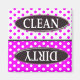 Magnet para colocar na frente da máquina de lavar louça para ajudar a lembrar se os pratos estão limpos ou sujos. Com bolinhas cor-de-rosa e branca!