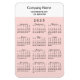O calendário preto moderno 2025 em um fundo cor-de-rosa coral apresenta o nome da sua empresa e informações de contato ou slogan no topo de um bloco de cor branca. Personalize o texto na barra lateral com seu nome comercial, site, número de telefone, endereço ou lema. Torna um promocional excelente oferecido aos seus clientes. Se quiser que um plano de fundo de cor diferente corresponda à cor da sua marca comercial, toque em "Editar usando a Ferramenta Design" e selecione uma cor de fundo na barra lateral. Clique em "Concluído" e em "Adicionar ao carrinho" para comprar o ímã de calendário personalizado. Copyright ©Claire E. Skinner. Todos os direitos reservados.
