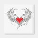 Coração vermelho pintado artificialmente com cinza de asas de anjo, decorado com contorno liso preto.