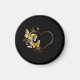 Dourada estrutura em forma de coração, decorada com ouro, joias e borboletas brancas sobre fundo preto.
