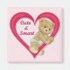 Urso de pelúcia adorável sentado num coração cor-de-rosa profundo. Este pequeno urso traz uma mensagem para o dia de os namorados ou para o ano inteiro. O texto diz "Bonito e Inteligente".