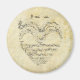 Em um fundo pergaminho, um manuscrito incomum de música medieval em forma de coração, a ode de Cordier a um que é "Bonne, belle, et sage", que é francês para "bom, adorável e sábio".