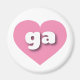 Este ímã apresenta um coração cor-de-rosa vibrante contendo as letras negrito, branca, minúsculas arredondadas ga ga, uma abreviação lúdica para a Geórgia, o estado de pêssego.