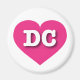 Este ímã apresenta um coração cor-de-rosa-quente vibrante contendo as letras maiúsculas, brancas e em negrito DC, a abreviatura oficial do Distrito de Colúmbia.