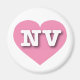 Este ímã apresenta um coração cor-de-rosa tranquilo e legal contendo as letras maiúsculas, brancas e em negrito NV, a abreviação oficial para Nevada, o estado prateado.