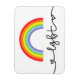 Esta trabalho de arte apresenta uma mão desenhada com a mão acenando uma bandeira colorida do arco-íris.