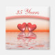 Magnet com meu trabalho de arte de dois corais flutuando na água sob um arco-íris. O texto personalizável diz "35 anos".