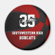 Este ímã legal do tema basquete apresenta a imagem de uma bola de basquete realista com painéis coloridos alternados de vermelho e preto - facilmente personalizados com o nome da escola, o nome do mascote e o nome do jogador & número de camisa - por katz_d_zynes