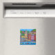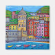 Magneta colorida da vila colorida e fascinante de Vernazza e é uma bela catedral em Cinque Terre, Itália pela artista popular Lisa Lorenz