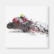 Um design de um motociclista de alta velocidade deixando poeira e detritos atrás dele.
