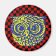 Ilustração gráfica de coruja em um plano de fundo verificado