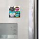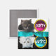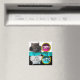 Sujo - Ímã limpa da máquina de lavar louça com ametista 3D e pedras azuis de gema. Gatos brancos e pretos agudos e expressivos com uma fita lacrimal azul-aqua, criados por Búlgaro Lumini (c).