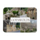 Imã de geladeira retangular de viagem com uma colagem de típicas casas de pedra de Cotswold em cidades de Cotswolds, Reino Unido como Bibury e Castle Combe dentro de um quadro branco com o texto "Cotswolds". Uma lembrança excelente da sua geladeira.