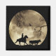 Um vaqueiro no cavalo arredondando gado à luz de uma lua de cheio grande.