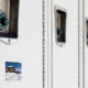 Fotoímã de Souvenir com um casal tradicional de cabanas de madeira ou chalés cobertos de neve sob um céu azul numa área de estância de esqui nos Alpes, na Áustria, no inverno.