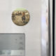 Trabalho de arte de cartão postal de safra em cavalos, no meio de vacas, num rancho