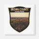 Trabalho de arte do Parque Estadual do Condado de Brown em um design de crachá. O parque é de longe o maior dos 24 parques estaduais de Indiana, ocupando 15.776 acres — fazer um dos maiores parques estaduais dos Estados Unidos.