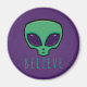 Ilustração da cabeça de alienígena de desenho animado com grandes olhos escuros com letra "Acredite".