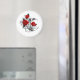 Contorno, lua da crista mecânica com engrenagens, decorada com rosas vermelhas com caules e folhas pretas em fundo branco. Steampunk