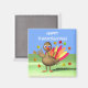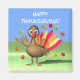 Magnet com minha trabalho de arte de um peru 3d bebê com um círculo de folhas de maple ao seu redor. Texto personalizável diz "Feliz Dia de Ação de Graças!"