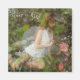 Uma jovem num jardim duplamente exposta com um dandelion. Diz 'Fazer um Desejo'