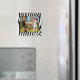 Crie seu próprio ímã fotográfico com sua própria imagem e texto. Esta modelo tem uma borda padrão de zebra. Esta design permite alterar a imagem e remover ou alterar a borda