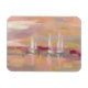 Um design abstrato e macio em pêssego macio e tons de rosa retratando veleiros na costa. Artista: Silvia Vassileva