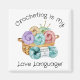 Este ímã engraçado e fabuloso é perfeito para qualquer amante de crochê que você conhece. Com os fios de aquarela brilhantes e felizes em uma cesta com ganchos de crochê, seria um presente de excelente. É perfeito com "Crocheting Is My Love Language!" e "Hand Made with Love By ______".