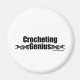 Várias mercadorias com dupla hélice de DNA e a frase "Genius Crocheting".