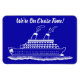 Magneta de cruzeiro engraçada e divertida com design de arte branca de um navio de cruzeiro e ondas. Estamos no Tempo Cruzado! o texto pode ser alterado para sua própria mensagem, assim como para o fundo azul. Perfeito para cruzeiros pela primeira vez para cruzeiros. Estes ímãs de navios de cruzeiro são úteis num cruzeiro. Coloque o ímã na porta do seu posto de metal para usar como um marcador de porta para ajudá-lo a identificar e encontrar sua cabine.