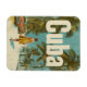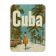 Esse cartão postal vibrante captura o espírito eterno de Cuba. Uma mulher atropelou uma rua com palma, cercada por edifícios coloridos e icônicos carros clássicos dos anos 50. Os tons quentes e lavados ao sol e as texturas nostálgicas dão vida ao charme vivo de Havana ou de cidades costeiras cubanas. Um belo tributo à moda do século médio, à paisagem tropical e à cultura de rua retrógrada.