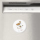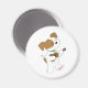 Um filhote fofo com cauda balançando, está cantando e dançando, enquanto aperta um ukulele.