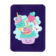 Um ímã flexível com uma ilustração fofinha com um cupcake e sorvete sorrindo de alegria. Um arco-íris e corações rodeiam o desenho. Uma nuvem fofa e fofa também está sorrindo de felicidade. O cupcake e o sorvete têm um trompa de unicórnio em cima. Cheio bonito e adorável de alegria.