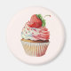Magnet com uma ilustração brilhante com um cupcake delicioso. Sorvete branco e um morango grande adoram este doce doce doce.
