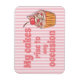 Magneta fina e doce, listrada, com a citação "Meus bolos sobem a qualquer ocasião" e deliciosa ilustração de cupcake de cereja.