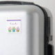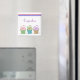 Um design bonito com uma borda roxa, rosa e azul e três cupcakes roxos em cores bonito com poucos corações no topo.