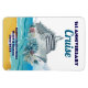 Custom small cruise cabin door magnet for your first anniversary that can be repurposed as a fridge magnet keepsake after the trip. Design with a cruise illustration with flowers, the sea, sand, and the editable text with the name of the ship, your names, and the date of the vacation.