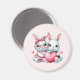 Magnet with an illustration featuring 2 white furry bunnies sharing a big pink heart. The girl bunny is wearing a cute bow on her head and heart-shaped glasses. The boy bunny is wearing an adorable little suit with a tie.