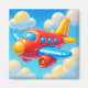 Artwork of a cute airplane in a plump cartoon art-style. An adorable, plump airplane soaring through a sunny, blue sky dotted with puffy clouds. Rendered in a playful, glossy style, this piece is full of energy and imagination, perfect for inspiring little dreamers. This artwork is the perfect addition to a nursery, playroom, or child's bedroom. It sparks curiosity about travel, adventure, and engineering. It's a delightful, non-threatening image that adds a splash of bright, energetic color to any kids' room and pairs wonderfully with transportation or sky-themed decor.