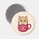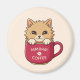 Íman Cute Cat in Coffee Mug Beige Custom Text