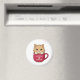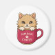 Cute cartoon illustration of a cat peeking out of a large coffee mug. Customizable text.