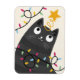 Christmas magnet featuring a cute cat with a tree-topper and Christmas lights.
