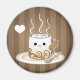 Um bonitinho mangá estilo kawaii, uma xícara quente de chocolate cacau com kawaii enfrentou marshmellows dentro. Com giros castanhos divertidos na xícara de café, só para adicionar decoração. Em um ímã circular