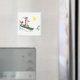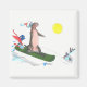 Magneta de Natal engraçada e fofa com uma lontra de neve, presentes e chapéu de Papai Noel. Felicidades de Natal excelente de todos, presentes a todos.