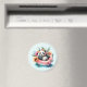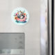 Um imã com uma imagem adorável de verão. Um design de aquarela com um panda preto e branco sentado em uma piscina na água. Cercado por flores silvestres bonito. Um urso muito frio.