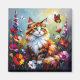 Íman Cute Whimsical Cat, Flowers and Butterflies