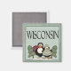 Bons amigos pinguins vêm em um imã de geladeira quadrada com o slogan de Wisconsin.