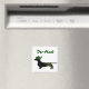 Magneta excelente Dachshund amante, com um alemão branco vestido de dachshund preto e texto acima da leitura, Der Hund (O Cão, em alemão). Excelente pequeno ímã de presente para qualquer amante de cachorro.